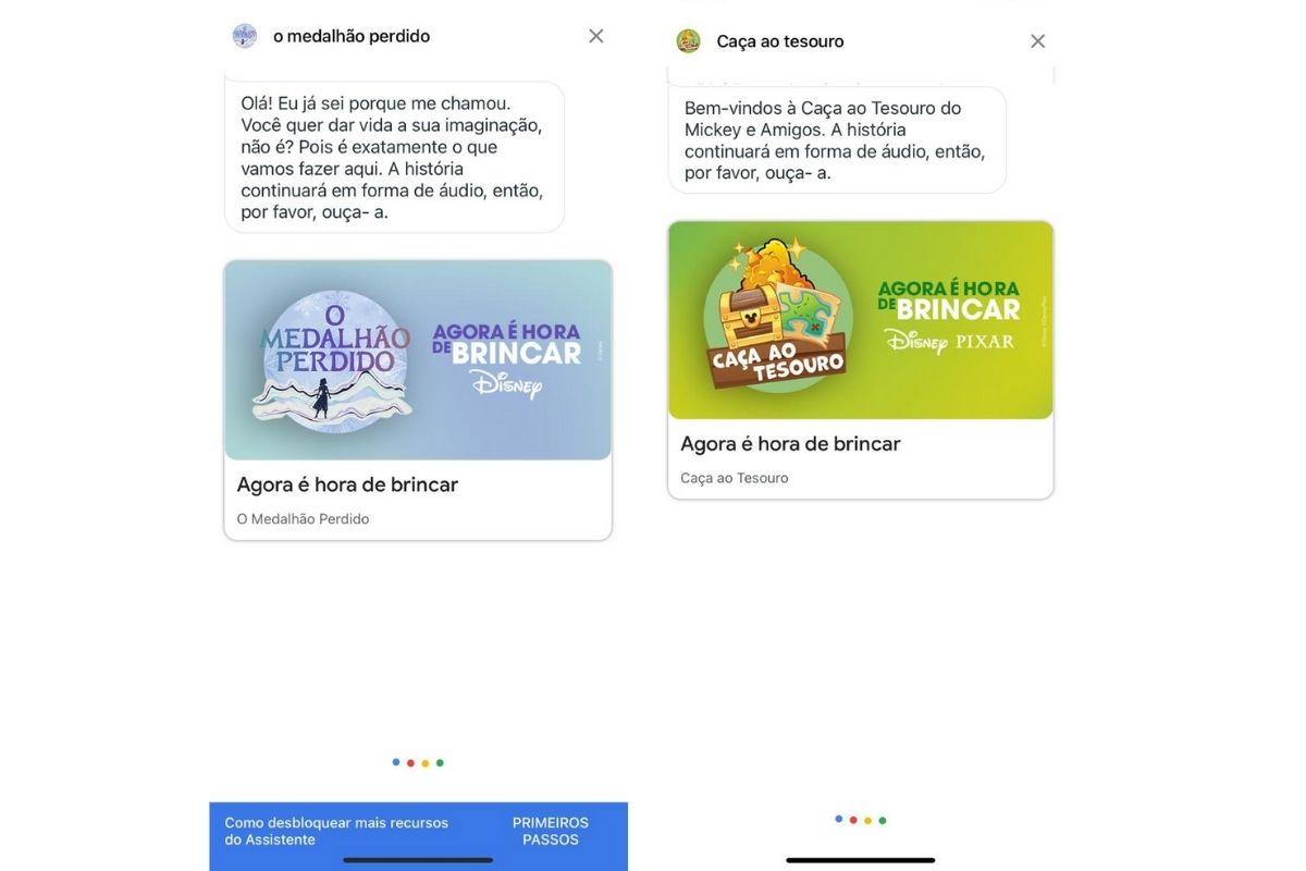 - Em seguida, no Google Assistente, diga: Falar com + o nome de uma das três histórias disponíveis (Caça ao Tesouro, Medalhão Perdido ou Universo de Aventuras da Marvel e Star Wars)