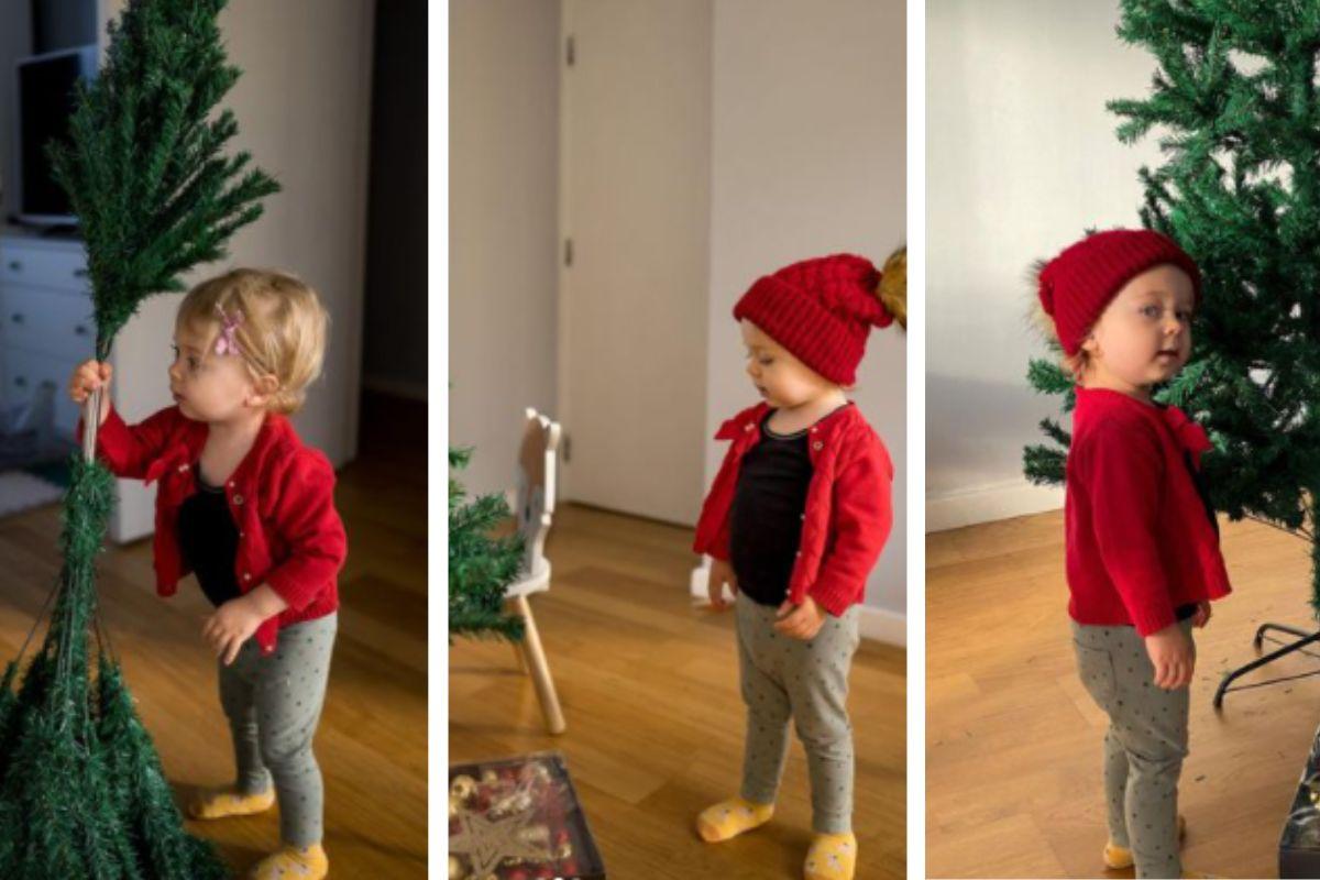Em uma sequência de três fotos, Alice aparece montando a árvore de plástico. Posteriormente, ela para a tarefa e aparece apreciando o que já foi feito. No último clique da sequência, enfim, a menina surge olhando para a câmera e sorrindo. Demais!