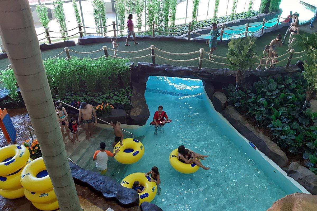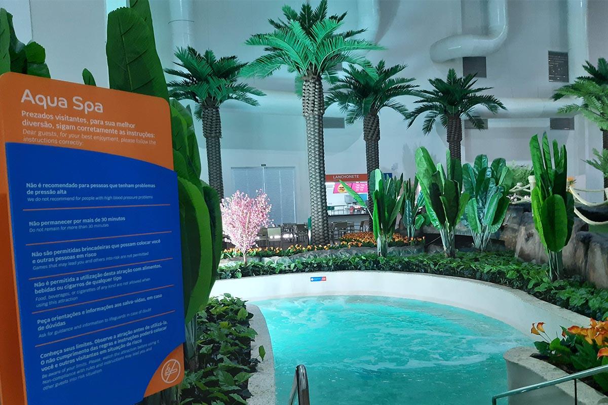 O parque é todo coberto e a temperatura lá dentro é de 28°C. Apesar de ser fechado, não fica escuro lá dentro, pois além da iluminação, uma das paredes tem uma mega janela de vidro, que permite a luz natural do dia entrar. Já a água, tem uma temperatura de 26°C e se você quiser uma água ainda mais quentinha, o “Aqua SPA” é aquecido a 29°C.