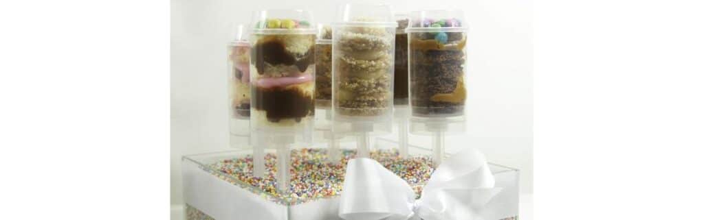 O ateliê Fabiola & Liana, especializado em bolos e doces decorados, acaba de lançar um doce chamado push cakes. São camadas de recheio e cobertura que podem ser consumidas conforme você empurra o êmbolo, como aquele pirulito famoso nos anos 90.