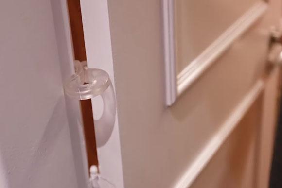 Você já deve ter prendido o dedo na porta em algum momento da sua vida e sabe o quanto é dolorido. Para não arriscar que seu filho fique com o dedo preso, o futuro pai indicou uma borracha que fica presa perto da dobradiças, assim a porta não vai fechar. Coloque em uma altura onde a criança não alcança e relaxe.