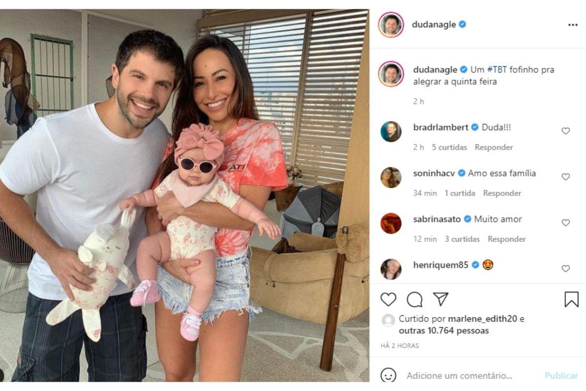 Duda Nagle usou as redes sociais nesta quinta-feira, 17 de junho, para compartilhar uma foto antiga cheia de amor ao lado da filha, Zoe, e da esposa, a apresentadora Sabrina Sato. Na foto, o casal aparece em um dia de sol, segurando Zoe ainda bebê no colo. “Um #TBT fofinho pra alegrar a quinta feira”, escreveu o pai ao publicar a imagem.