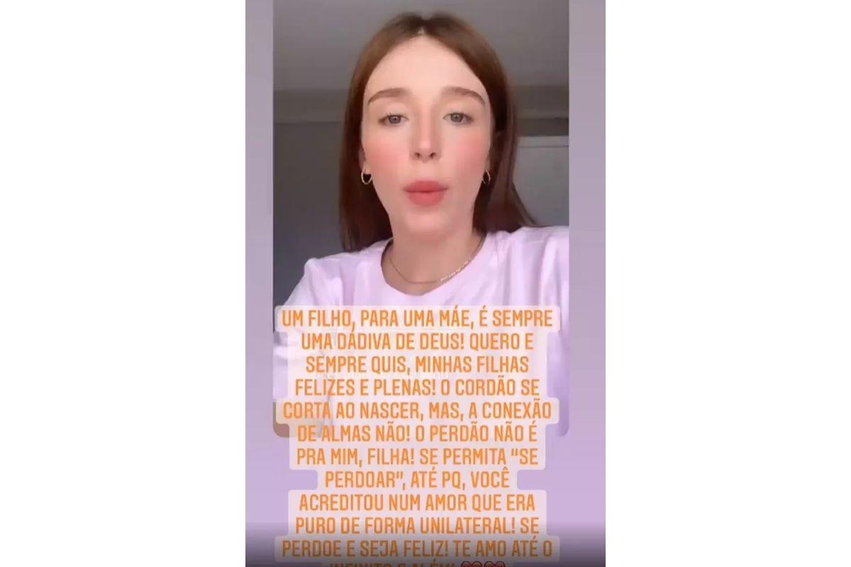 Durante um vídeo publicado a tarde, a modelo falou sobre o pedido de perdão. “É um perdão público por não ter escutado eles. Eu estava cega. Meus pais sempre me amaram muito, sempre foi um ato de amor”, disse ela. “Eu queria pedir perdão e dizer que eu amo muito a minha família. Não se sujeitem a isso. Eu precisei chegar no extremo. Pai, mãe, minha irmã, meus amigos próximos, eu peço perdão se um dia invalidei vocês”, afirmou a modelo e atriz.