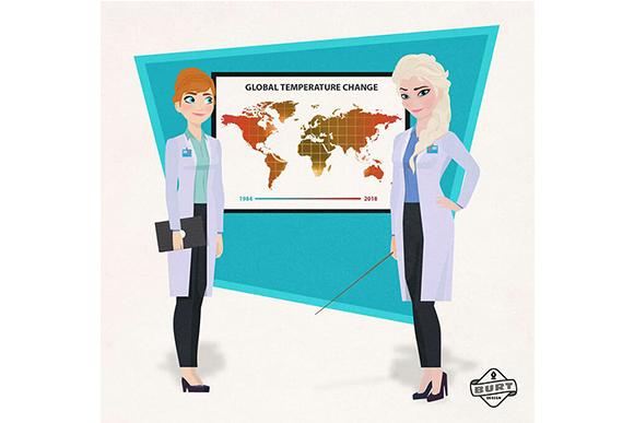 Ana e Elsa, as princesas do filme “Frozen” viraram meteorologistas e pesquisam as mudanças climáticas. Isto porque, no filme, as irmãs estão familiarizadas com os efeitos dessas alterações.