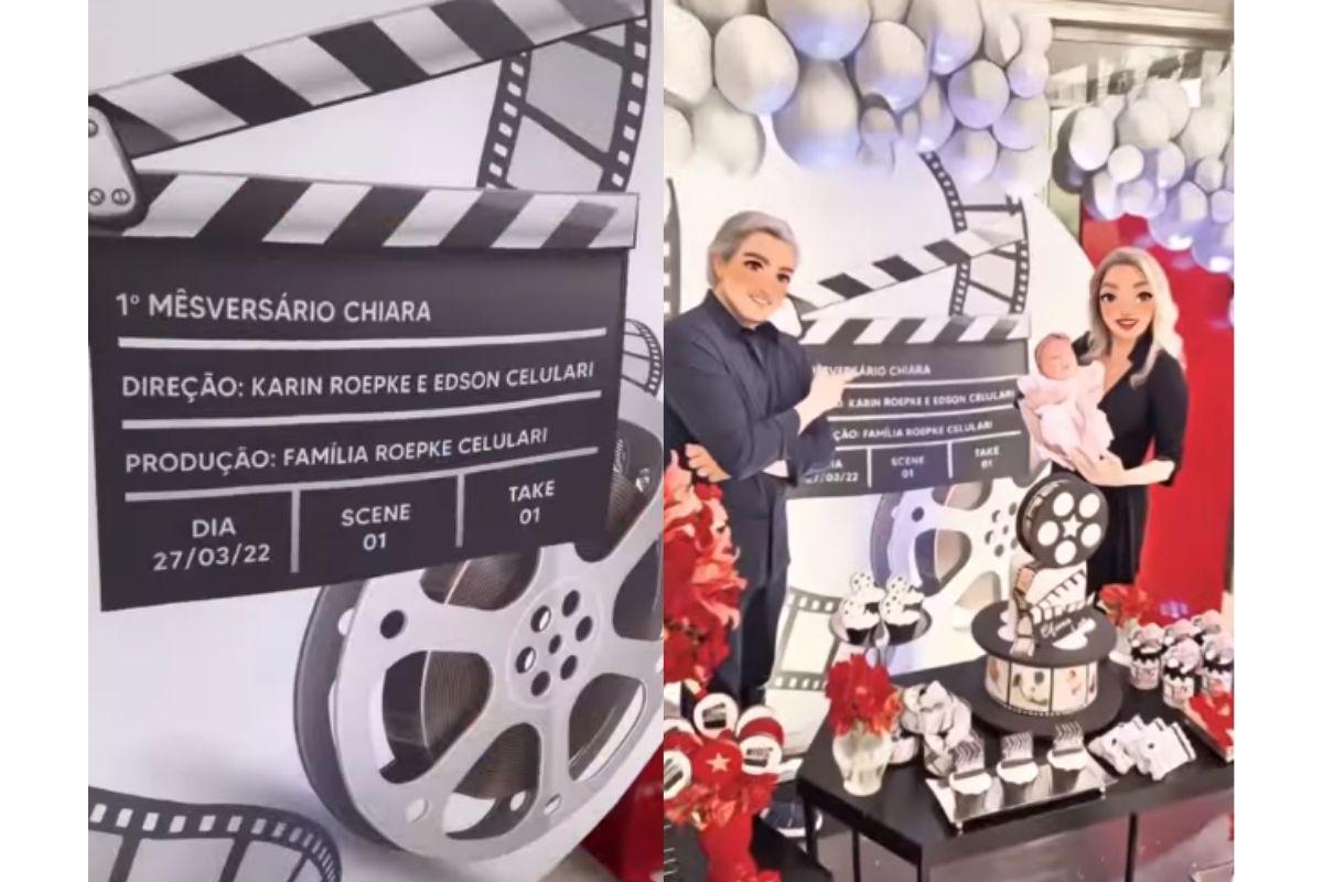No dia 29 de março, Karin Roepke e Edson Celulari realizaram uma festa para comemorar o primeiro mês de vida da filha, Chiara. O casal usou as redes sociais para mostrar detalhes da festa.