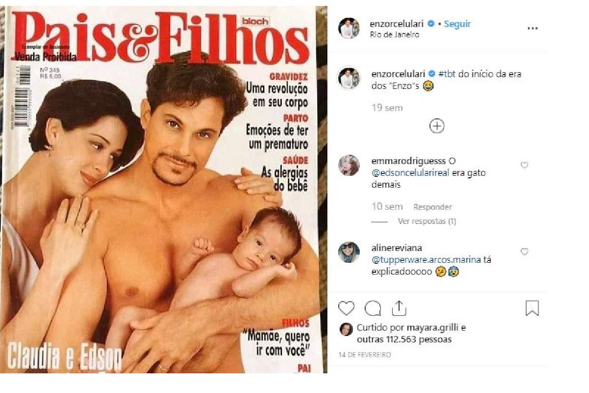 Enzo, hoje na faculdade, já foi capa da Pais&Filhos em 1997. A gente conseguiu que Cláudia Raia e Edson apresentassem o filho na nossa revista. E em uma quinta-feira, O garoto resolveu compartilhar a a revista em clima de TBT e brincou com o nome. “#tbt do início da era dos ‘Enzo’s”, escreveu.