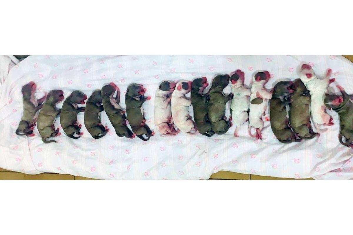 Pesando entre 200 e 250 gramas, nasceram 8 machos e 8 fêmeas, praticamente do mesmo tamanho. “Foi um parto bem atípico. Nunca fiquei sabendo na região do nascimento de 16 filhotes“, destacou. “Não sei muito sobre o histórico da cachorra. Pode ser algo genético, a mãe dela pode ter sido uma boa parideira também”.