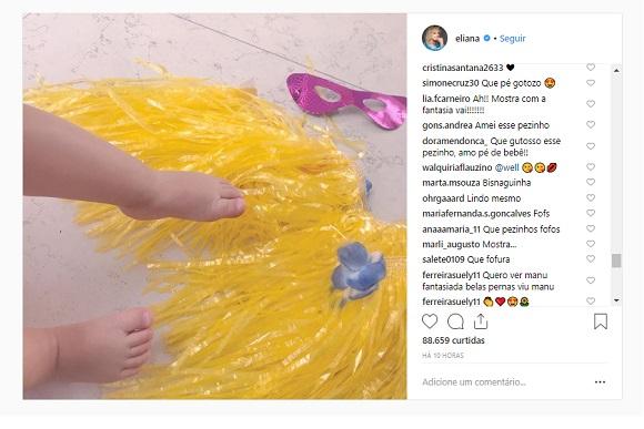 Já estamos curiosas para ver a menina na fantasia, e parece que não somos as únicas. “Já quero ver esse look completo por favor Eliana, acho que não é pedir demais né?! Rsrs”, escreveu uma fã nos comentários da publicação. “Queremos vê-la de fantasia”, reforçou outra.