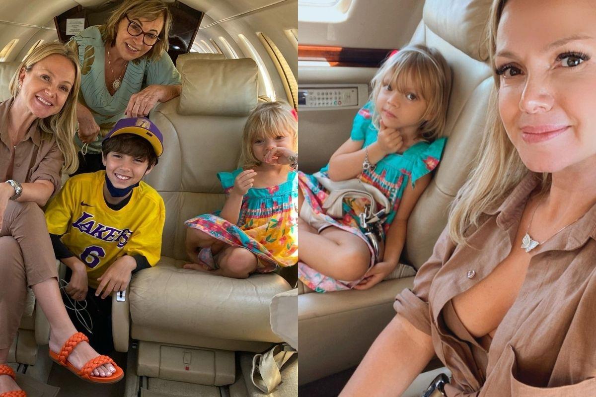 Recentemente, a mãe de Manuela e Arthur publicou uma sequência de fotos ao lado dos filhos e da mãe indo viajar de férias, dentro de um jatinho particular a mãe mostra o filho vestido com roupa do time de basquete americano ‘Lakers’ e a filha com um vestido azul de flores lindo. Eliana não contou o destino da viagem.