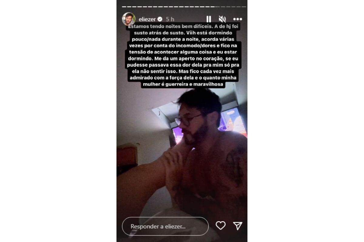 Nessa quarta-feira, dia 29 de março, Eliezer contou em seu Instagram que Viih Tube costuma comparar seu corpo atual ao de antes da gravidez. O ex-BBB refletiu sobre como as mulheres se cobram para voltarem ao que eram antes e e contou como a aconselha nesses momentos. O casal, que se casou recentemente, espera Lua, primeira filha dos dois.