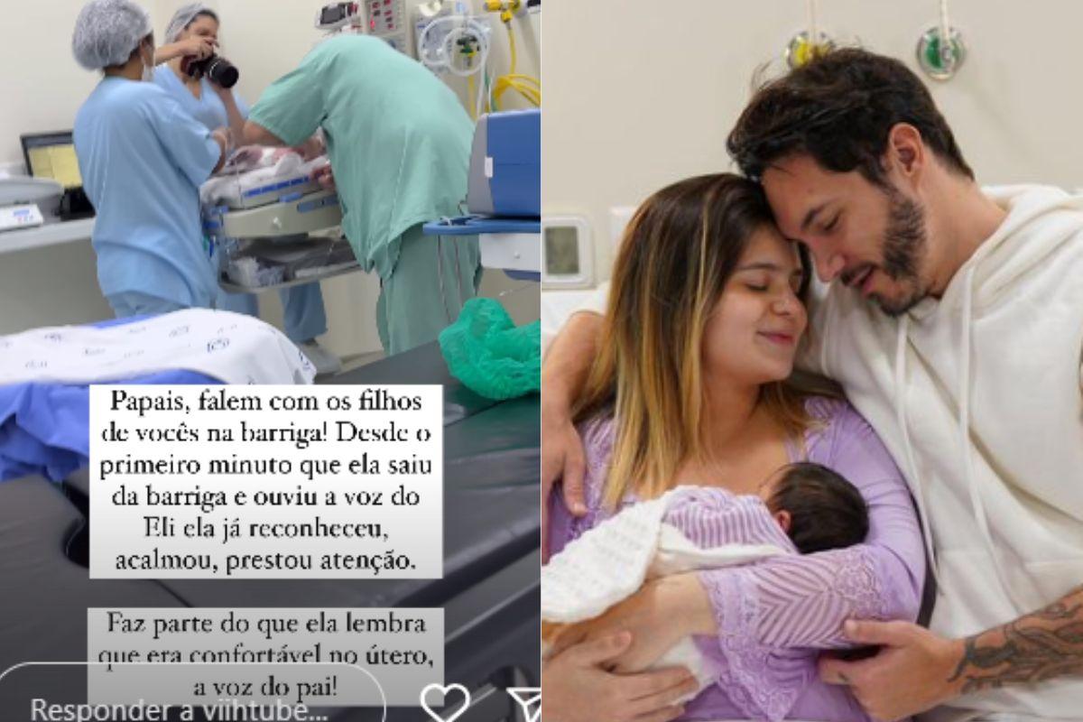 Viih Tube também contou sobre o parto para os seguidores, entre o que foi dito por ela, foi a importância dela e do esposo terem conversado com a bebê durante a gravidez: “Papais, falem com os filhos de vocês na barriga! Desde o primeiro minuto que ela saiu d abarriga e ouviu a voz do Eli ela já reconheceu, acalmou e prestou atenção. Faz parte do que ela lembra que era confortável no útero, a voz do pai”, escreveu ela.