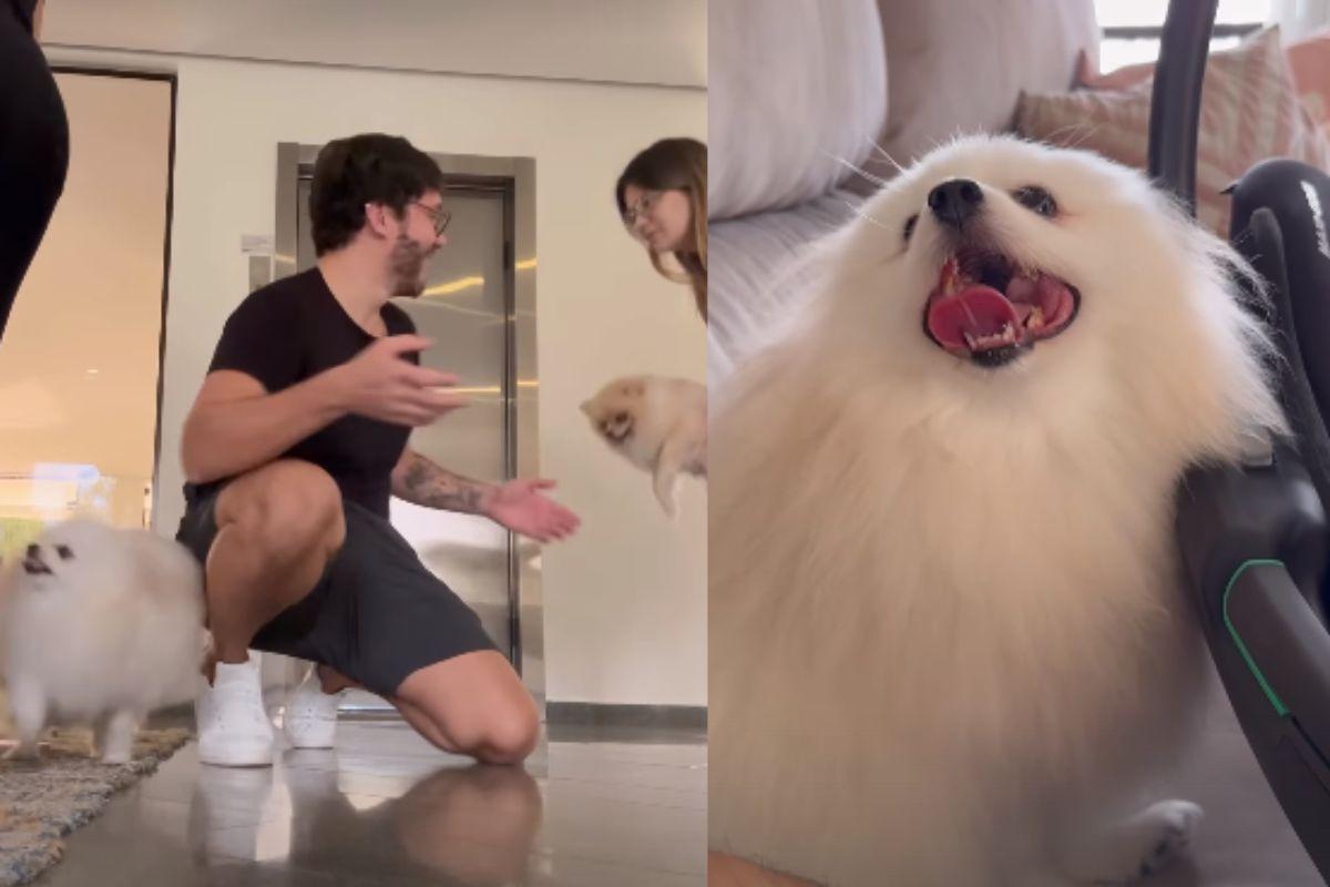 “A gente chegou em casa agora, e tem um momento que eu to muito ansioso pra ver. Que é a reação dos cachorros, nossos filhos de quatro patas com a Lua… Nós vamos fazer um processo que é contaram que pode dar certo. Nós vamos descer com os cachorros para o hall do prédio pra gente entrar em casa juntos, com a Lua. Para eles poderem saber que a Lua é de casa, que ela é a dona da casa”, disse ele nos stories.