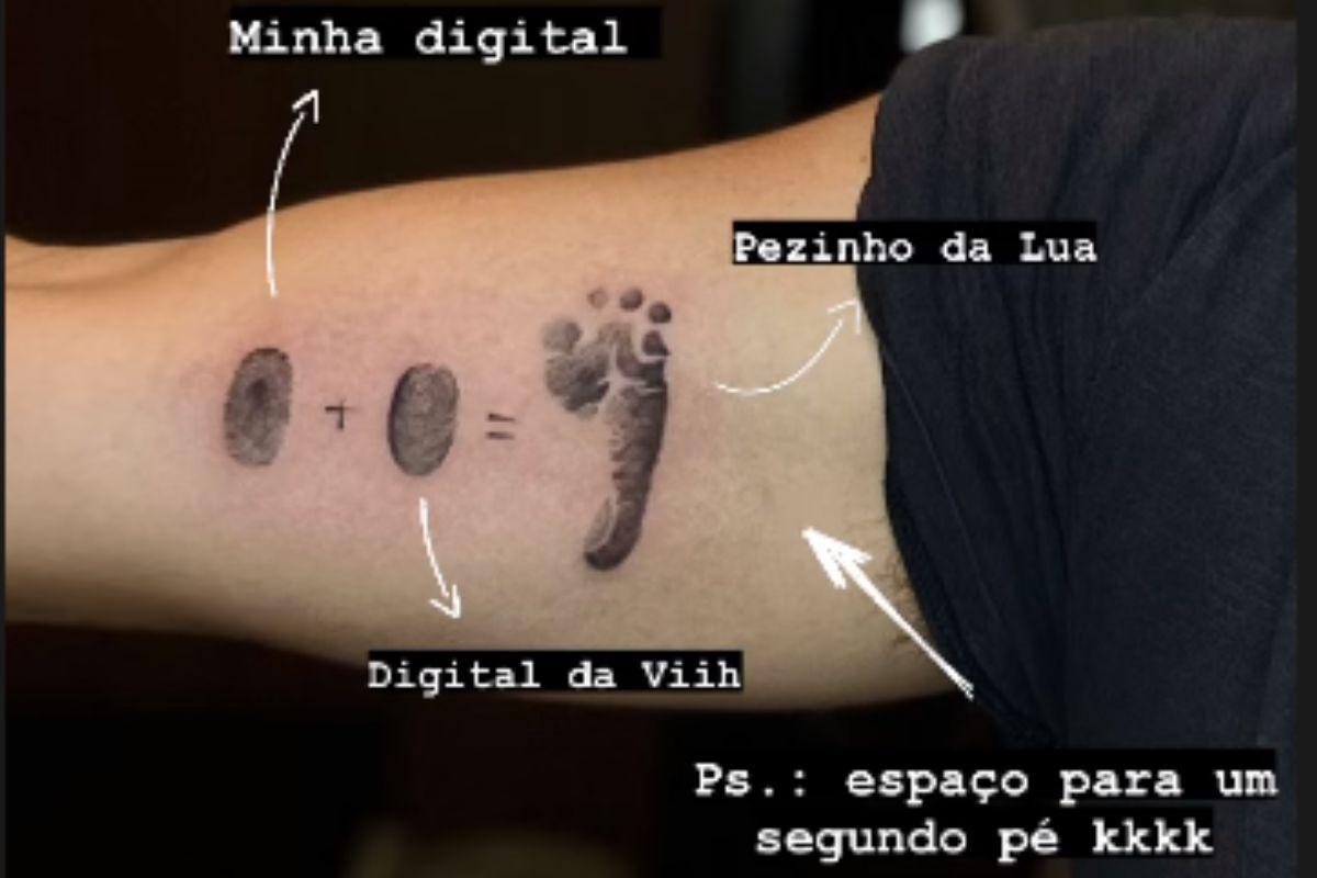 O pai do momento, Eliezer, fez recentemente uma tatuagem em homenagem à família, a esposa Viih Tube e a filha Lua, que tem pouco menos de 1 mês de vida. No Instagram ele compartilhou todo o processo, desde a ideia até o momento em que ele mostra a surpresa para a esposa.