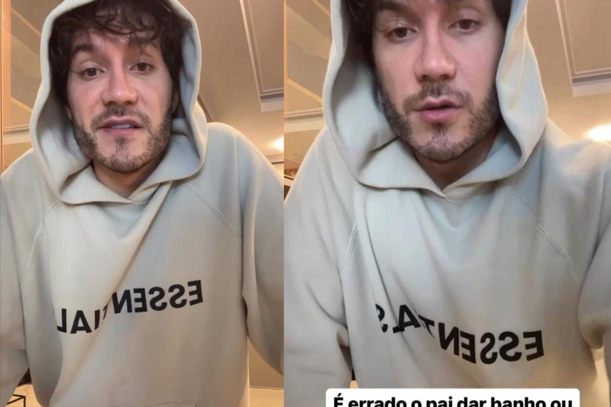 Ele continuou: “Nos comentários, muitas pessoas falavam o quanto era errado o pai dar banho na filha, e para justificar essa resposta, muitas contavam casos que aconteceram até mesmo dentro de casa ou com uma pessoa próxima, e infelizmente isso é real. Os números deste tipo de situação, a maioria acontece dentro de casa. Só que eu acho que o caminho para a gente evitar esse tipo de coisa não é tipo: ‘todos os pais não podem dar banho nas suas filhas’, generalizar, porque eu acho que isso não resolve. Principalmente nessa fase, existem algumas coisas que a gente pode introduzir na educação dos nossos filhos, dos nossos bebês, para que ela cresça entendendo que o corpo dela é sobre ela”. Na legenda, perguntou: “É errado o pai dar banho ou trocar suas filhas?”.
