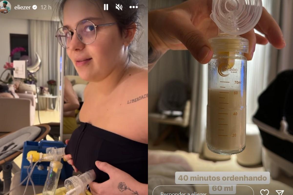 Eliezer e Viih Tube estão compartilhando as primeiras experiências da maternidade depois do nascimento de Lua, no início deste mês. Nesta sexta-feira, 21 de abril, o ex-BBB mostrou a esposa usando uma bomba para tirar leite para a filha e usou um termo para se referir ao processo que precisou se explicar depois.