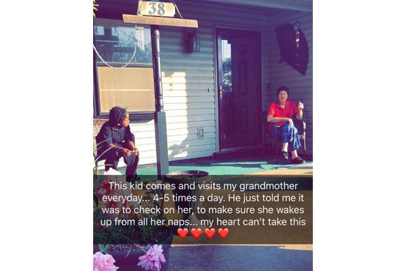 “Essa criança vem visitar minha avó todos os dias… 4-5 vezes no dia. Ele me contou que veio para checá-la, ter certeza de que ela estava acordando de todas suas sonecas… Meu coração não aguenta!”