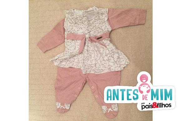 Imagina inovar no guarda-roupa gastando pouco? No site Antes de Mim, você pode anunciar e comprar produtos novos e seminovos online, como essa saída maternidade, da Lojinha da Juliana Aparicio Baksa.