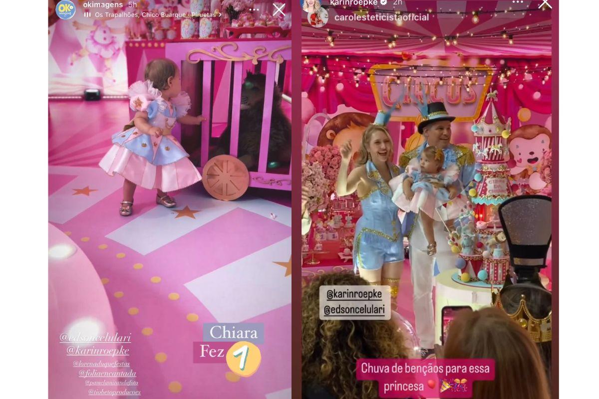 Os vídeos da decoração foram compartilhados por Karin no próprio perfil do Instagram e o tema escolhido pela família foi: Circo. Tanto os pais, como o irmão, Enzo, se caracterizaram do tema, junto de Chiara.
