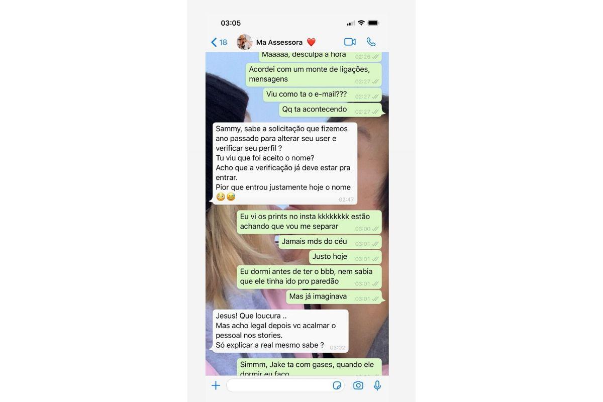 Já a assessora, também tranquilizou os internautas: “Sammy, sabe a solicitação que fizemos ano passado para alterar seu user e verificar seu perfil? Tu viu que foi aceito o nome? Acho que a verificação deve estar para entrar. Pior que entrou justamente hoje o nome”, concluiu.
