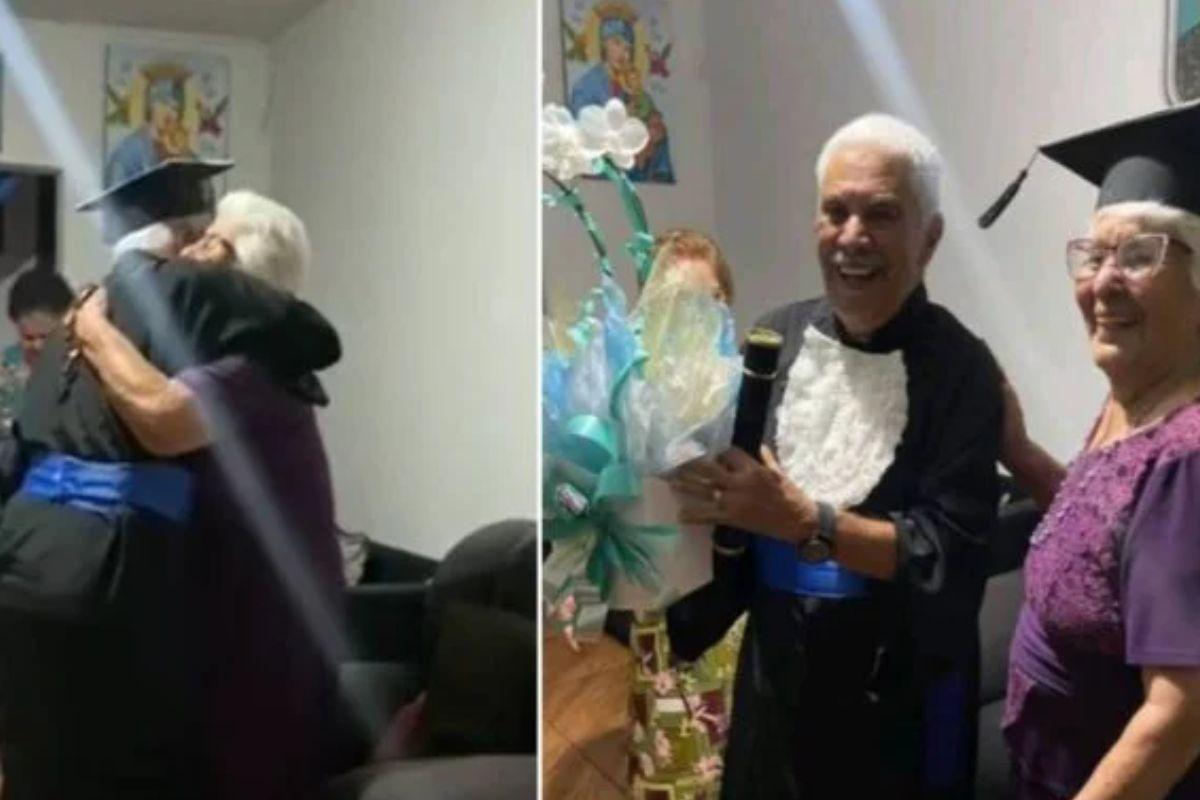 Idoso se forma na faculdade aos 78 anos e emociona mãe de 98 anos com conquista