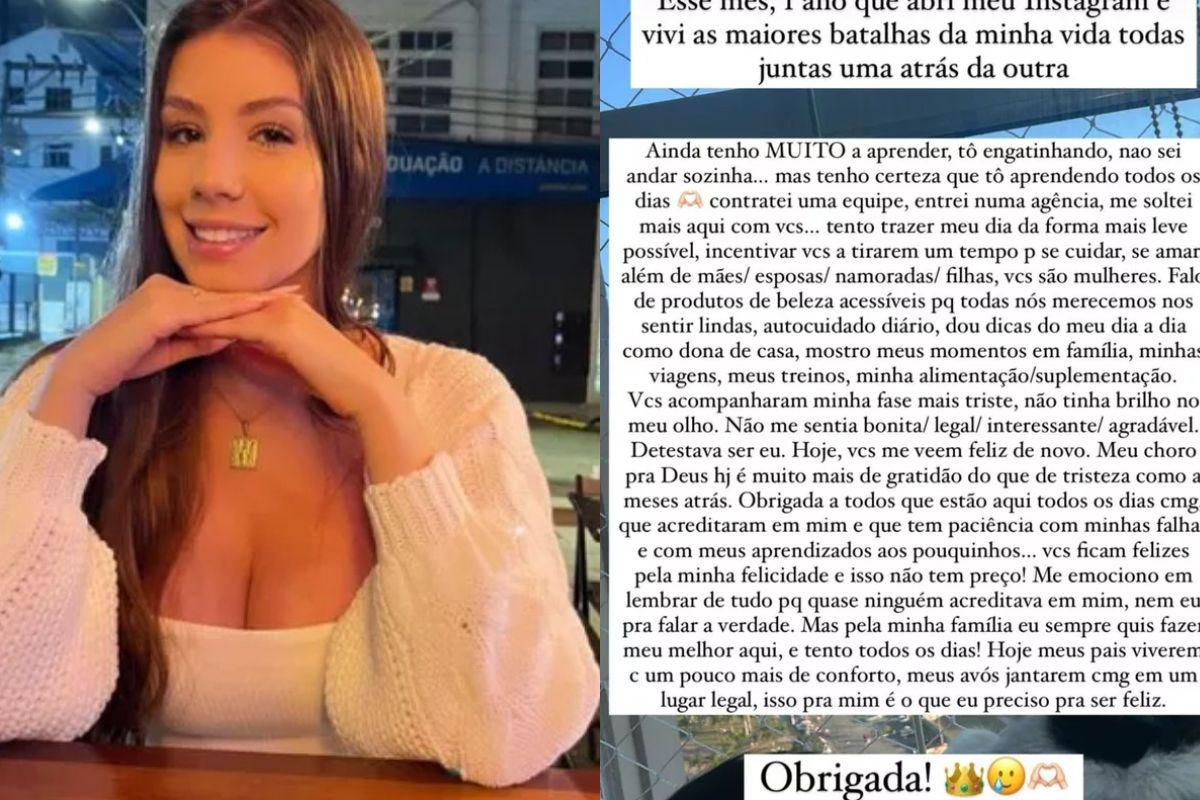 E ela complementou: “Me emociono em lembrar de tudo porque quase ninguém acreditava em mim, nem eu, para falar a verdade. Mas, pela minha família, eu sempre quis fazer meu melhor aqui e tento todos os dias! Hoje meus pais vivem com um pouco mais de conforto, meus avós jantam comigo num lugar legal… Isso é o que eu preciso para ser feliz”.