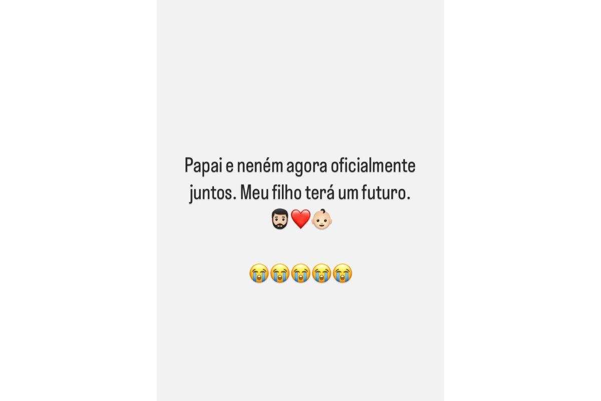 “Hoje é o dia mais feliz da minha vida. O dia que me libertei do cativeiro”, escreveu ele. Na sequência, ele completou: “Papai e neném agora oficialmente juntos. Meu filho terá um futuro”. Até então os pais do bebê estavam esperando uma decisão do juiz sobre o caso.
