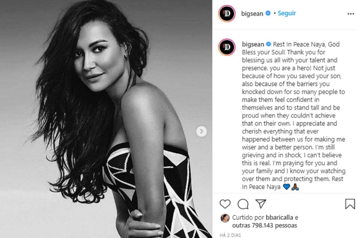 Apesar da relação complicada que o rapper Big Sean e a atriz Naya Rivera tinham, o famoso não deixou de se pronunciar depois da morte da atriz. Nas redes sociais, o ex-noivo fez uma homenagem à famosa. Ele publicou duas fotos de Naya Rivera junto ao texto.