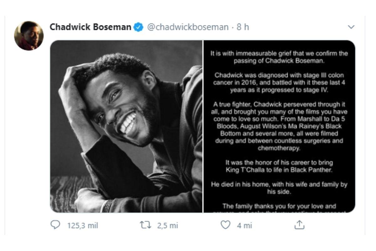 A família lamentou a perda (Foto: Reprodução / Twitter / @chadwickboseman)