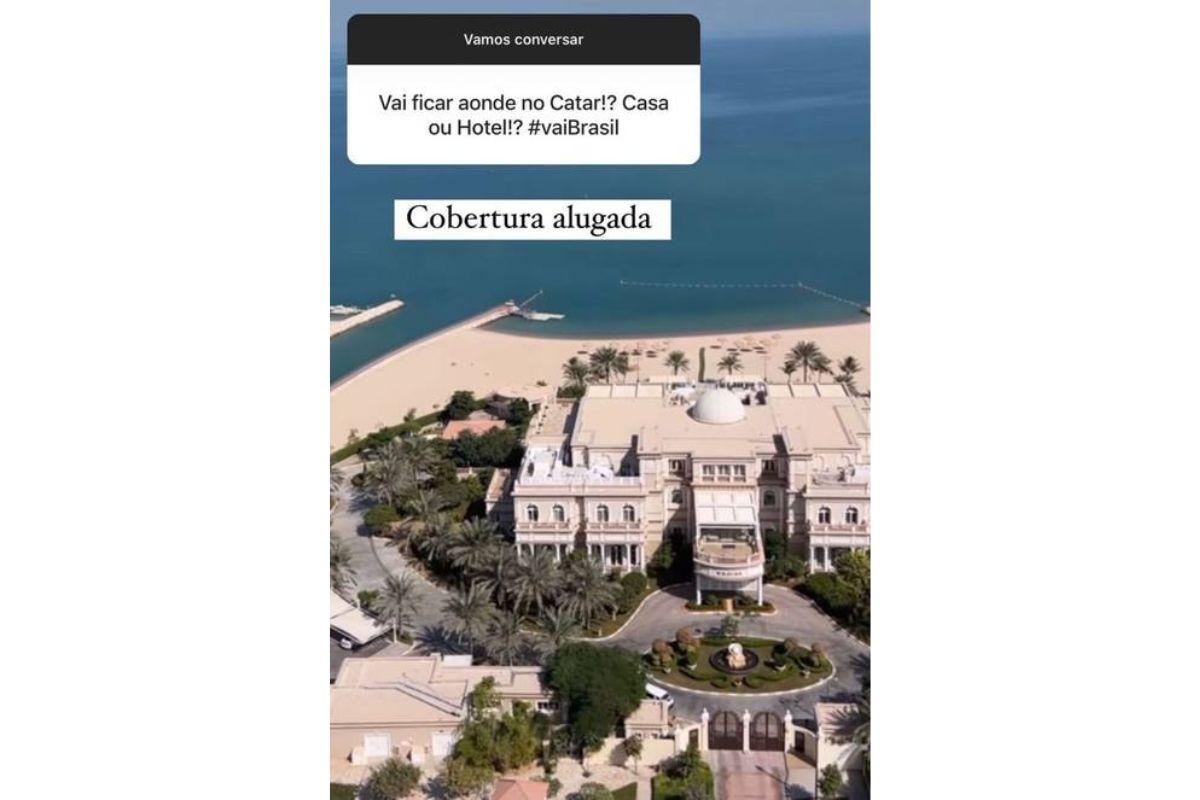 “Olhem essa vista! Meu Deus! Coisa mais linda!”, disse Fernanda Bachi nos stories do Instagram, esposa de Matheus Bachi, filho de Tite. Matheus também é auxiliar técnico da seleção. Nas imagens registradas por a esposa, ela mostra a linda vista da cobertura. Além da vista privilegiada para a família do técnico, os familiares dos jogadores também ficarão hospedados no mesmo lugar.