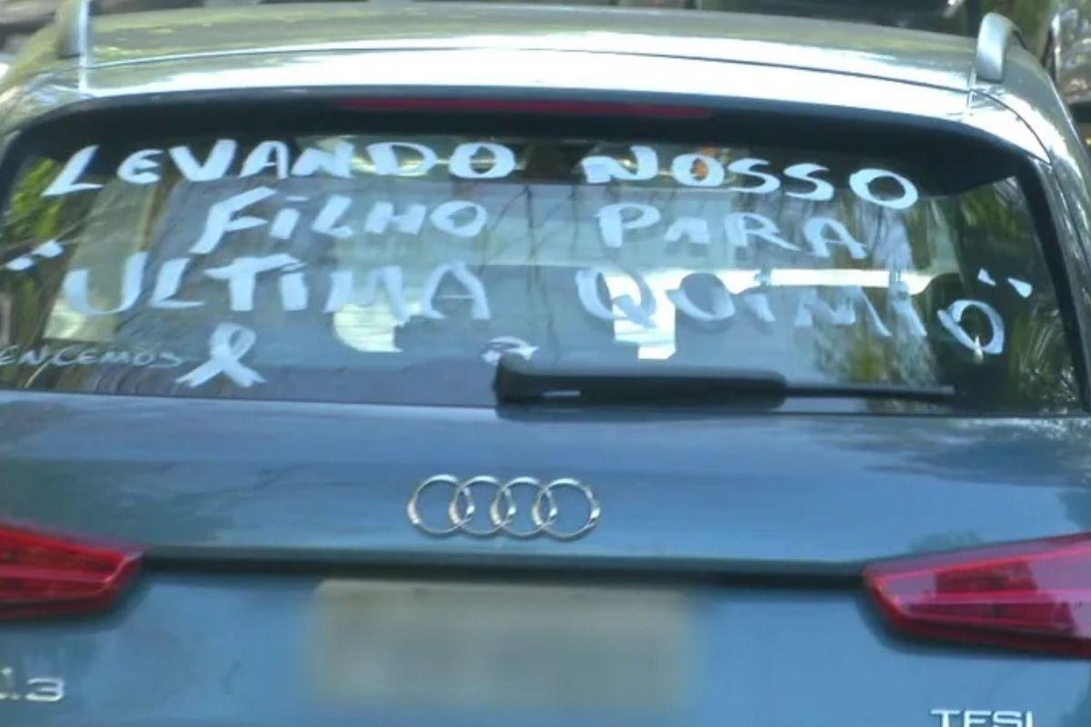Nesta última sessão, a família fez questão de escrever no carro que a batalha tinha acabado e receberam muitas mensagens de carinho na internet. “O tratamento em si é muito complicado. Têm as intercorrências. Têm a restrição, pois a gente não pode ver ninguém!”, falou a mãe do garoto, Natália Moya, para o portal da Band.