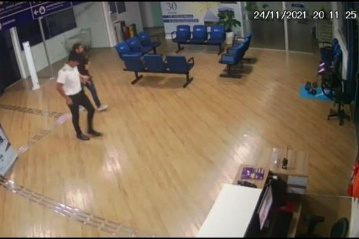 Imagens da câmera do aeroporto mostram o copiloto ao lado de um homem embarcando no avião (Foto: Reprodução/EPTV Campinas/O Globo)