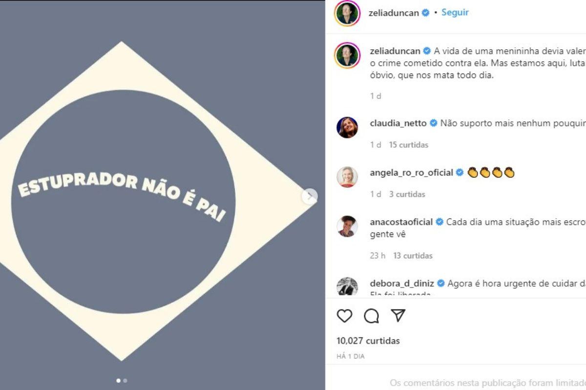 Também do mundo da música, Zelia Duncan falou também no Instagram que essa decisão é um crime!