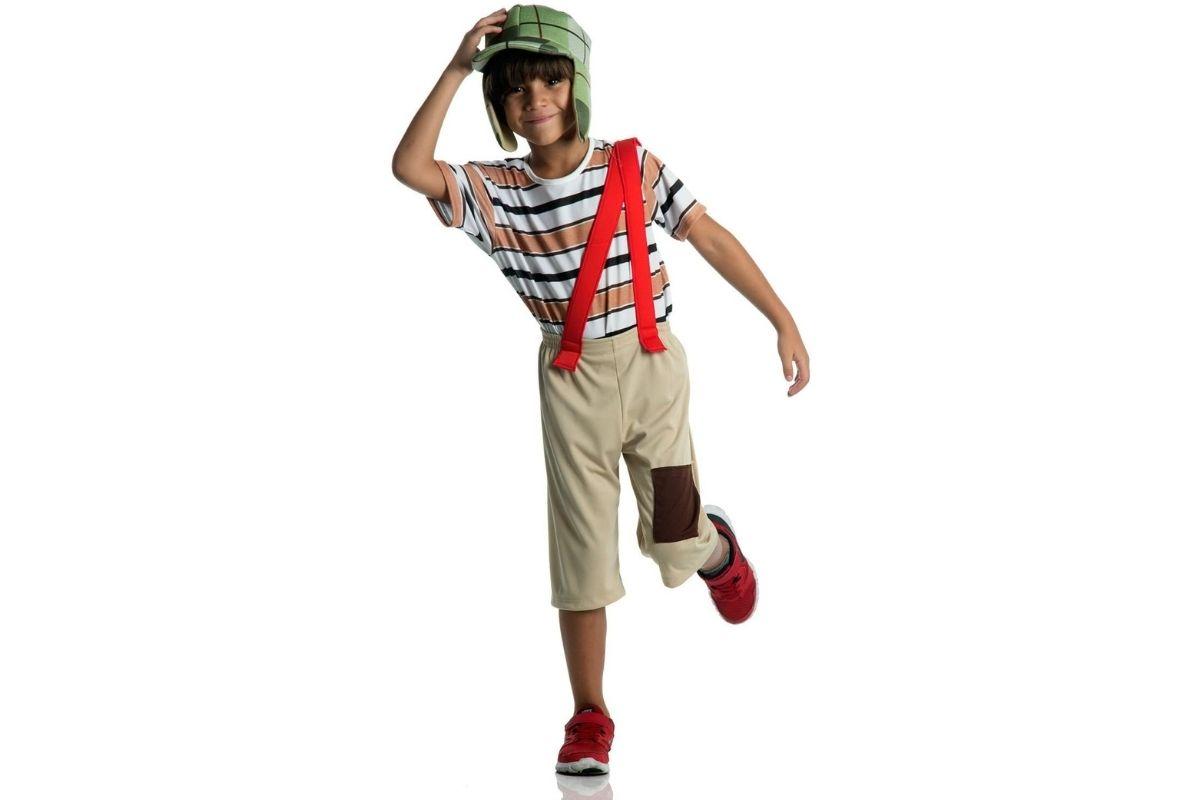 Se você é fã de Chaves e ensinou o seu filho a gostar também, essa fantasia será muito divertida. Além da camiseta listrada e da calça que simula estar remendada é presa com o suspensório do personagem, ainda vem com um chapéu que marca registrada do menino da vila. Para comprar na Amazon com 15% de desconto é só clicar AQUI.
