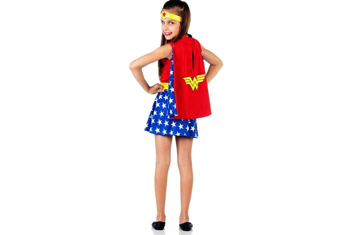 É claro que a Mulher Maravilha não ia ficar de fora dessa festa! Essa é uma capa linda em vermelho e azul, com as estrelas que remetem à personagem e que sua filha poderá usar por cima de uma roupa que já tenha em casa para dar aquele toque especial. Para comprar na Amazon com 15% de desconto é só clicar AQUI.