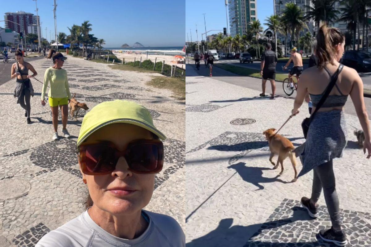 A apresentadora Fátima Bernardes aproveitou a manhã de sol nesta quinta-feira, 6 de julho, para fazer uma caminhada com a filha, Beatriz Bonner, de 26 anos, na companhia de uma amiga. Na apresentação do programa musical “The Voice”, Fátima aproveitou o momento de folga para se exercitar na orla da Barra da Tijuca, no Rio de Janeiro.