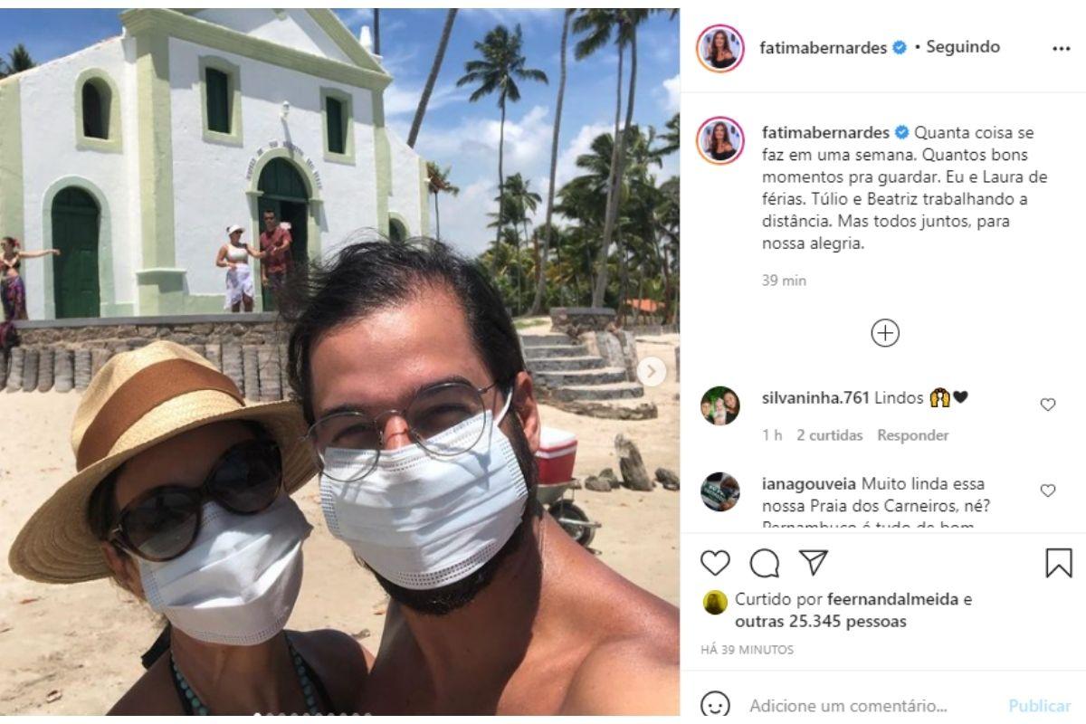 Os internautas amaram ver mais sobre o passeio e logo começaram a comentar. “Lindos!”, elogiou um seguidor. “Que delícia! Aproveitem muito”, comentou outro. “Alagoas e Pernambuco são muito lindos!”, contou outra. “Fátima eu fico tão feliz de te ver assim saudável e aproveitando a vida que é tão rara. Você merece tudo de bom”, escreveu mais um. Veja a publicação abaixo: