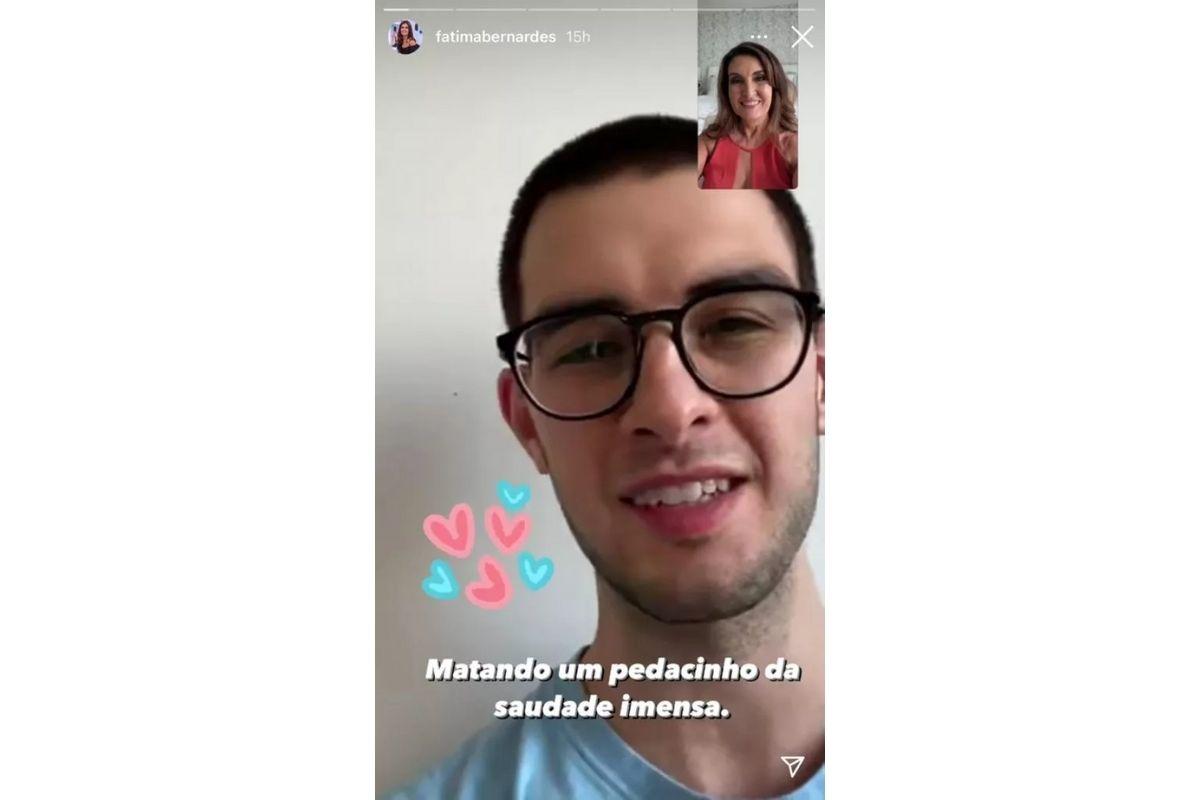 Fátima Bernardes contou aos seguidores nesta quinta-feira, 22 de abril, que conseguiu perder um pouco da saudade do filho Vinícius, que mora na França para estudar. A apresentadora disse que estava sentindo uma saudade imensa do jovem. Ela ainda postou print de vídeo chamada com o estudante nas redes sociais.