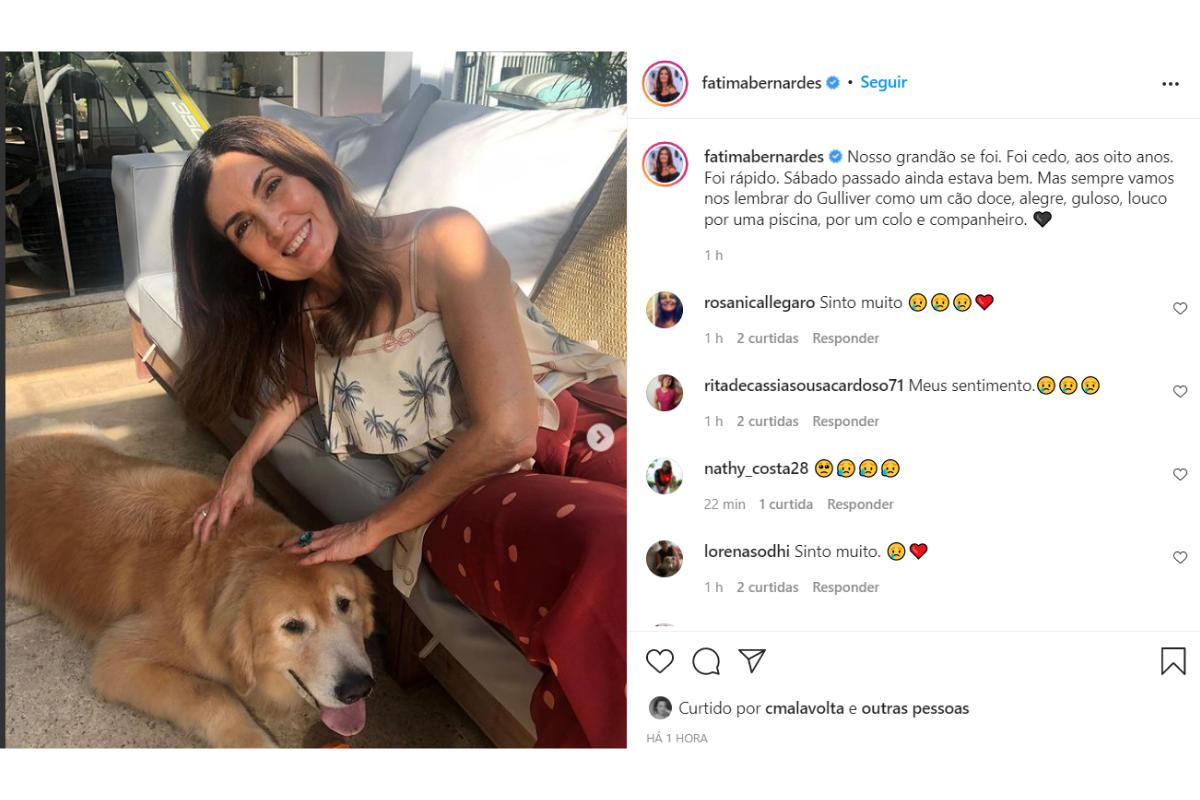 Nesta sexta-feira, dia 03 de dezembro, Fátima Bernardes utilizou as redes sociais para compartilhar uma mensagem de despedida. Gulliver, o cachorro da família da raça golden retriever, faleceu devido complicações de saúde ainda não anunciadas.