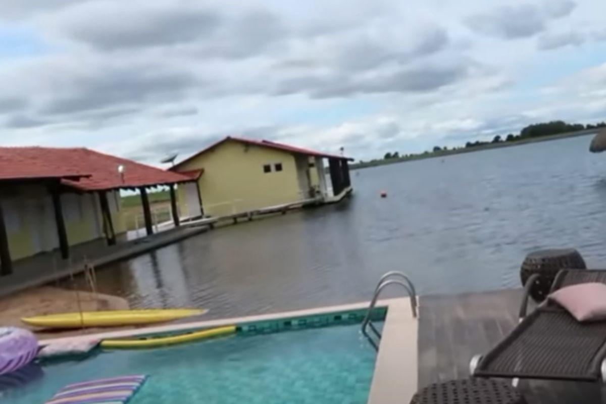 Rodeada por um grande lago, a fazenda conta com equipamento para jet ski e uma piscina. “Aqui é muito calor mesmo, é uma raridade chegar às 10 da manhã e não ter um sol forte”, contou a nora de Leonardo.