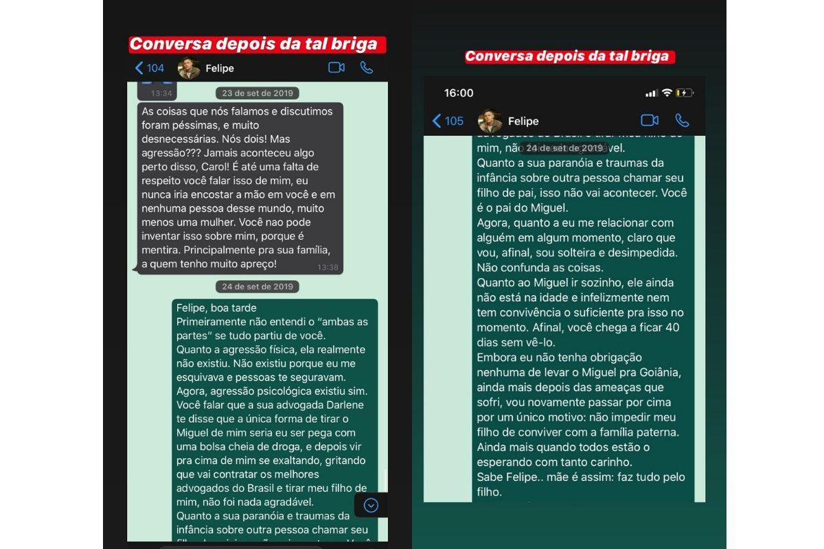 Constrangida, a psicóloga decidiu compartilhar um print como prova das ameaças: “No dia do nascimento do meu filho, no dia mais feliz da minha vida, eu sofri constrangimento até nesse dia, eu chorei de raiva. eu estou pedindo, pelo amor de Deus, por favor, ao Felipe, aos familiares e alguns amigos dele e assessoria: não me obriguem a ter que expor mais nada, eu estou pedindo por favor, eu não quero expor mais nada, mas eu não vou aguentar vocês mentindo, me desmoralizando, fiquem quietos, é melhor ficar quieto do que mentir porque enquanto vocês mentem daqui, eu desminto daqui! Chega!