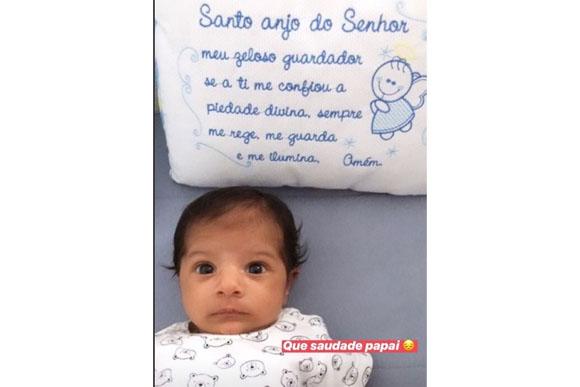 Em fevereiro, o filho do cantor Felipe Araújo nasceu e ele já teve que se despedir. O sertanejo está viajando em uma turnê pela Europa e na sexta-feira (22) postou uma foto do menino dizendo que está com saudade.
