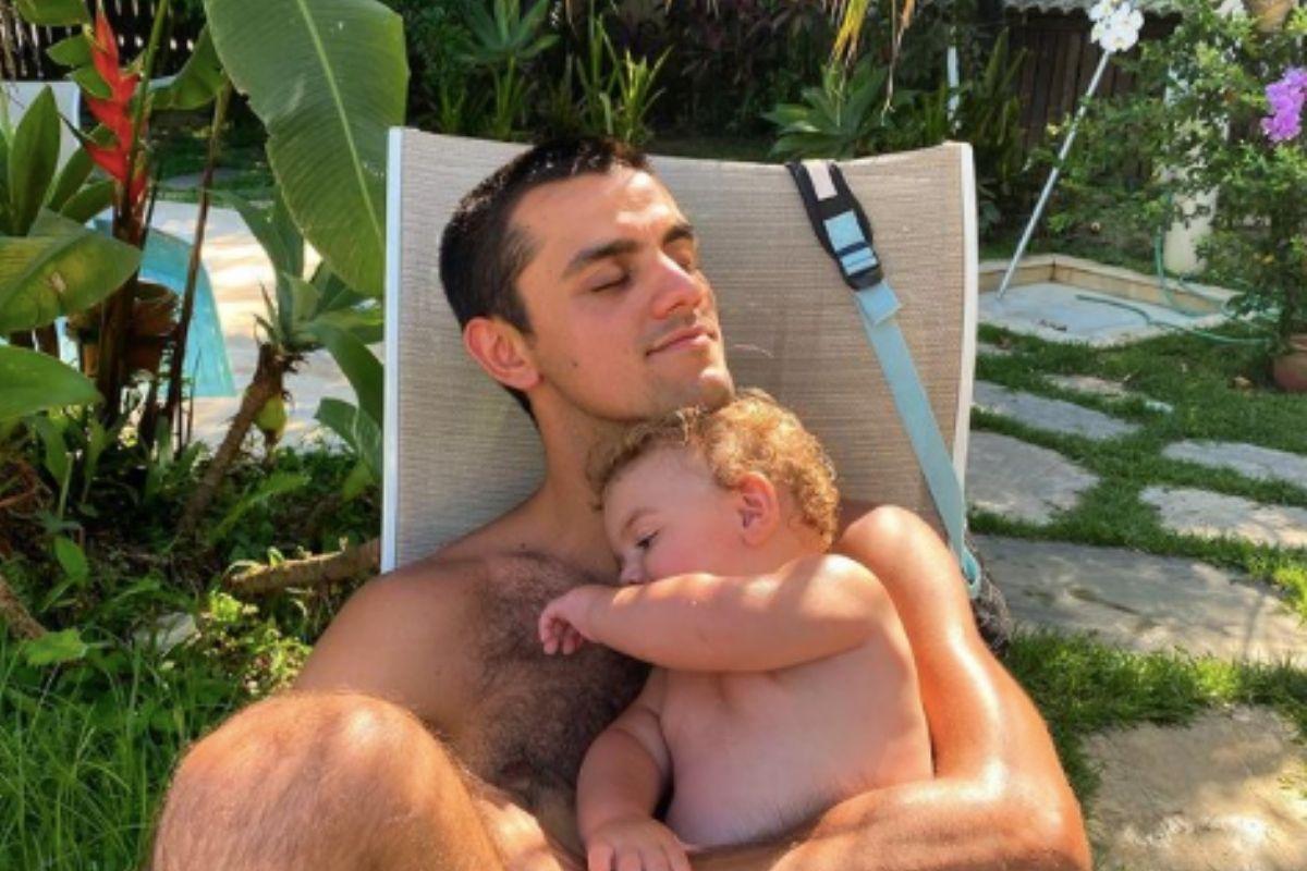 Neste sábado, 28 de novembro, Felipe Simas compartilhou foto com o filho caçula, Vicente, na beira da piscina e fez desabafo sobre os desafios da paternidade nas redes sociais. O ator é casado com Mariana Uhlmann, com quem, além do caçula, tem mais dois filhos, Joaquim e Maria.