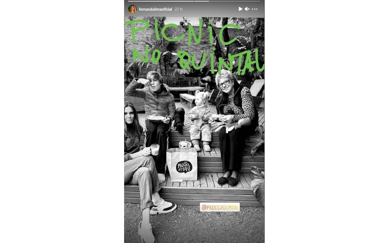 Fernanda Lima apareceu com os filhos aproveitando um piquenique em família (Foto: reprodução/Instagram/@fernandalimaoficial)