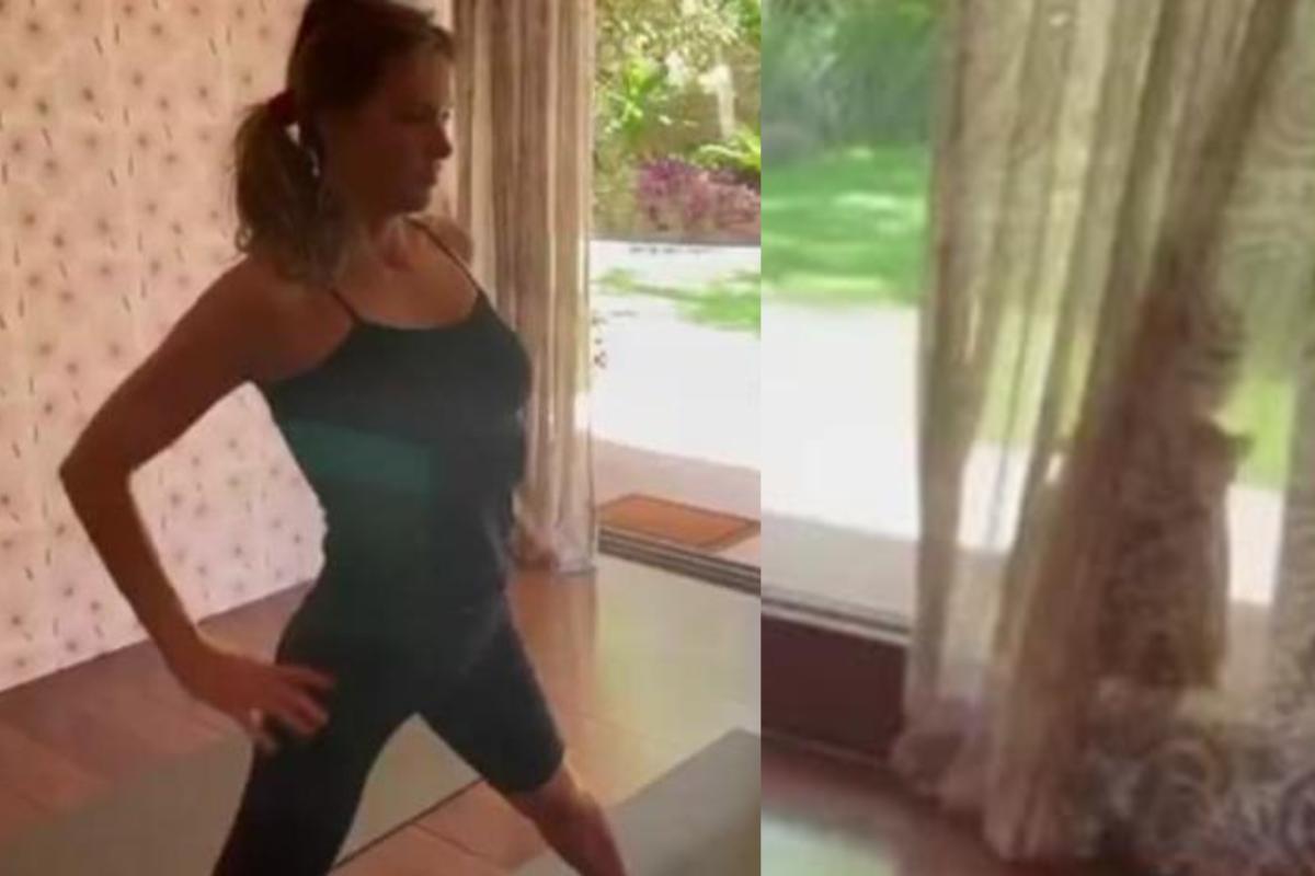 Ela estava fazendo Yoga enquanto Maria Manoela brincava de se esconder atrás da cortina (Foto: Reprodução/ Instagram/ @fernandalimaoficial)