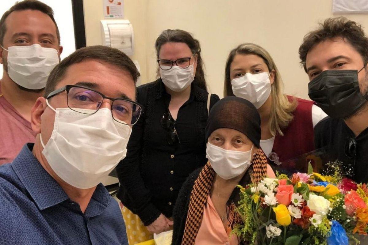 Ela descobriu um câncer de mama e realizou a última sessão de quimioterapia. O sertanejo acompanhou a mãe em todo o processo e viu a aplicação da medicação. No final, ele tirou fotos com a equipe médica que cuidou da mulher.