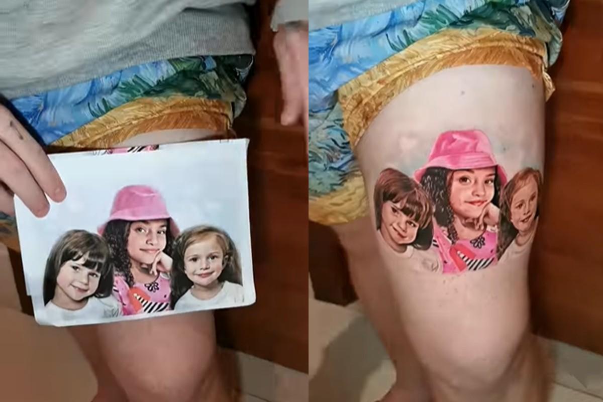 Ferrugem eternizou o amor pelas três filhas, Júlia, Sofia e Aurora nesta semana ao fazer uma tatuagem com o rosto delas na perna. O cantor mostrou o resultado em um vídeo no Instagram, em que aparece sorrindo.