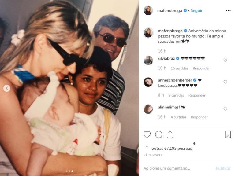 Maria Fernanda compartilhou uma série de fotos ao lado da mãe e comentou: “Aniversário da minha pessoa favorita no mundo! Te amo e saudades mil”. A jovem aproveitou para mostrar momentos super divertidos ao lado da mãe e uma lembrança de quando ainda era bebê.