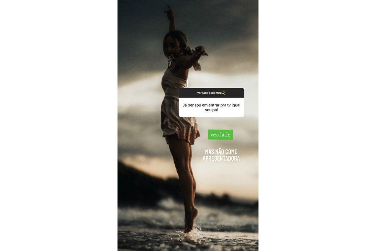 No post em questão, uma seguidora perguntou: “Já pensou em entrar para a TV igual ao seu pai?”. Marina, então, admitiu que sim. “Verdade. Mas não como apresentadora”.
