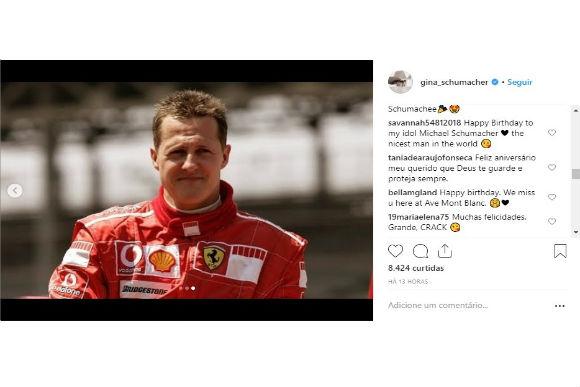 Nesta quinta-feira (03/01), a lenda do automobilismo Michael Schumacher completa 50 anos de vida e, para celebrar, sua filha Gina fez uma declaração em seu perfil do Instagram para “o melhor pai”.