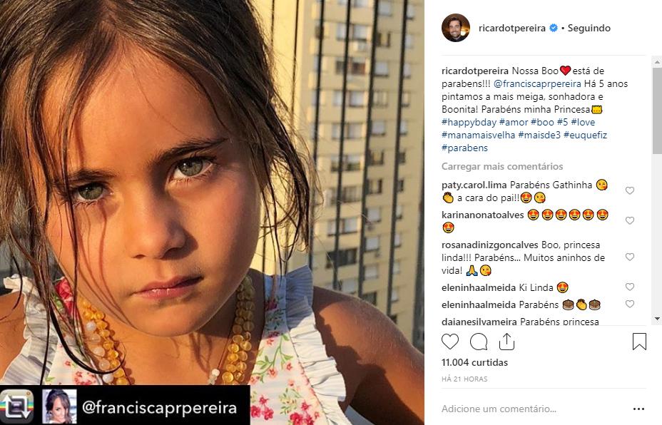 Ator e pai de três, Ricardo Pereira, compartilhou nas redes sociais na última segunda-feira (29), a comemoração do aniversário de 5 anos da filha Francisca, também conhecida como “Boo”.